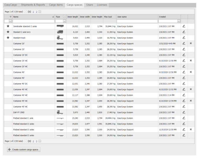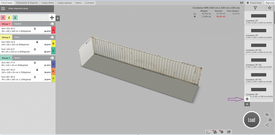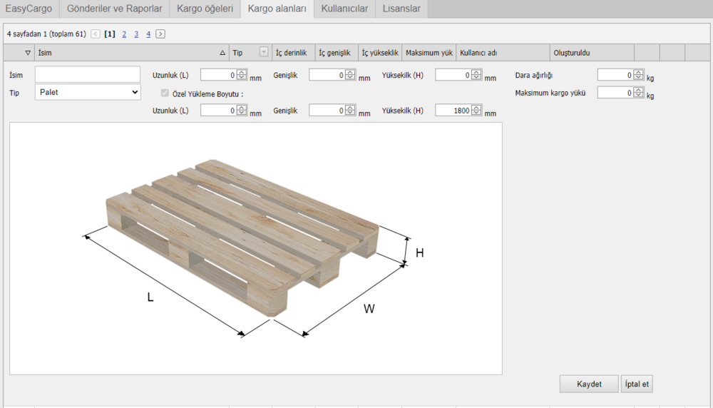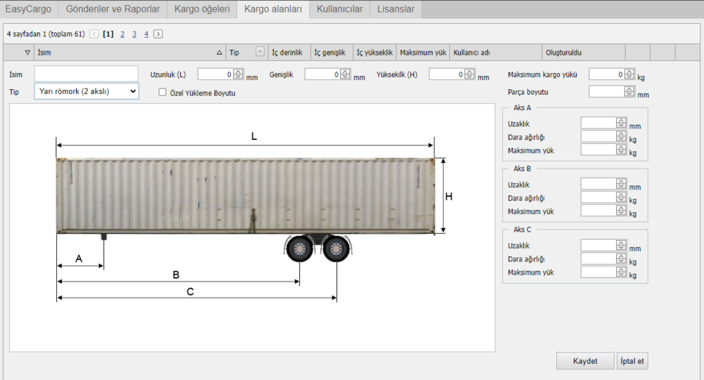 Önceden tanımlanmış farklı konteyner, paletler ve kamyonları bulabileceğiniz kargo alanları sekmesi altında size yol gösterecektir.