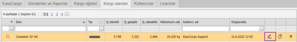 İlk ekranın sağ üst köşesinde kargo alanlarını filtreleme seçeneğiniz vardır.