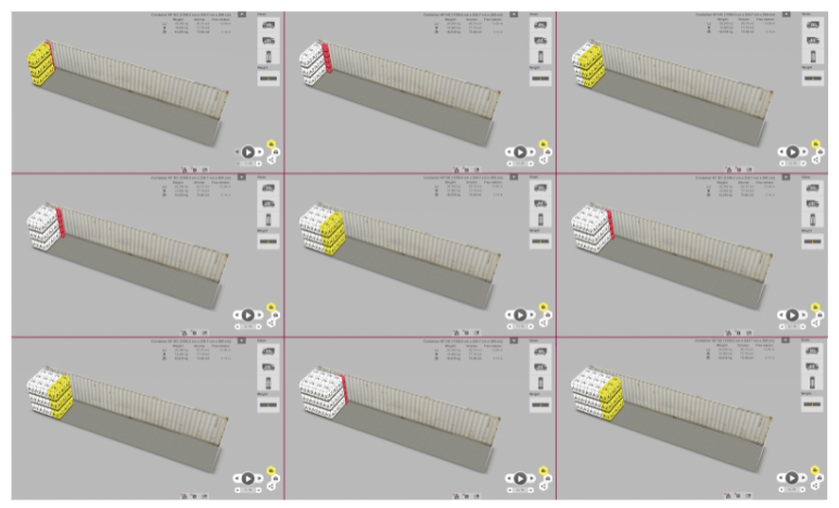 Yüklemek istediğiniz maddeler giriş listesine eklendikten ve kargo alanı tanımlandıktan sonra, Yükleme planı hesaplamasına devam edebilirsiniz. Sağ alt köşedeki Yükle düğmesine tıklayarak EasyCargo otomatik yükleme planı hesaplamasına başlayacaktır: