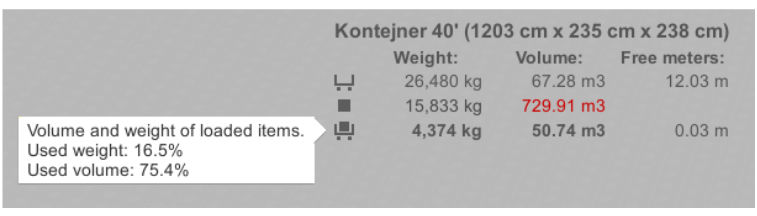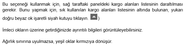 İmlecinizi yüklü kargo alanına (alt kısmı) sahip simgeye yerleştirirseniz, kargo alanı kullanım yüzdesi görüntülenir: