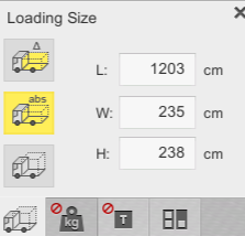Birinci düğme, bir kutu kamyonu gösteren “Yükleme boyutu” düğmesi, her bir sevkiyat için kargo alanının kullanılabilir boyutunu ayarlama seçeneği sunar. Kargonun yükleme alanının hacmini aşmasına izin veren daha küçük ve daha büyük hale getirilebilir: Bu makalede, nasıl çalıştığını öğrenebilirsiniz.