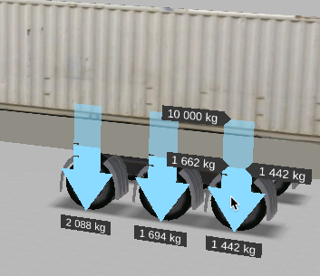 Mavi oklar, yükün dengesiz dağıldığı durumlarda ortaya çıkan negatif yükü gösterir – örneğin, yük alanının bir tarafındaki ağırlık, kaldıraç etkisiyle diğer tarafın yükselmesine neden olduğunda.