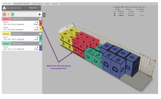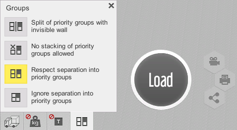 Öncelikli gruplar başlangıçta bir kamyon veya römork boyunca farklı boşaltma noktalarını yönetmek için tasarlanmıştır. Ancak aynı zamanda kargo maddelerinin farklı bir yükleme sırasını uygulamanız gerekiyorsa da yararlı olabilirler. Varsayılan olarak, yükleme sırası yüklerin boyutuna göre tanımlanır: en büyük kutular önce yüklenir. Bu ayar kargo alanlarının en verimli şekilde kullanılmasını sağlayacaktır. Ancak, bazı durumlarda, bu istenen çözüm olmayabilir. Ayarların nasıl değiştirileceğine ilişkin seçeneklerden biri, öncelik gruplarını uygulamaktır